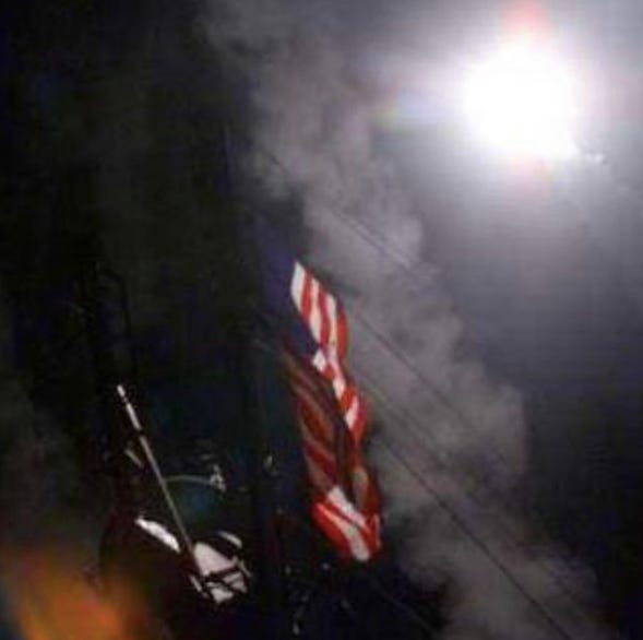 We set up cameras around the vertical launch systems. Then the sun went down and the war started when a two story Tomahawk missile rumbled out of the aft vertical launch system.